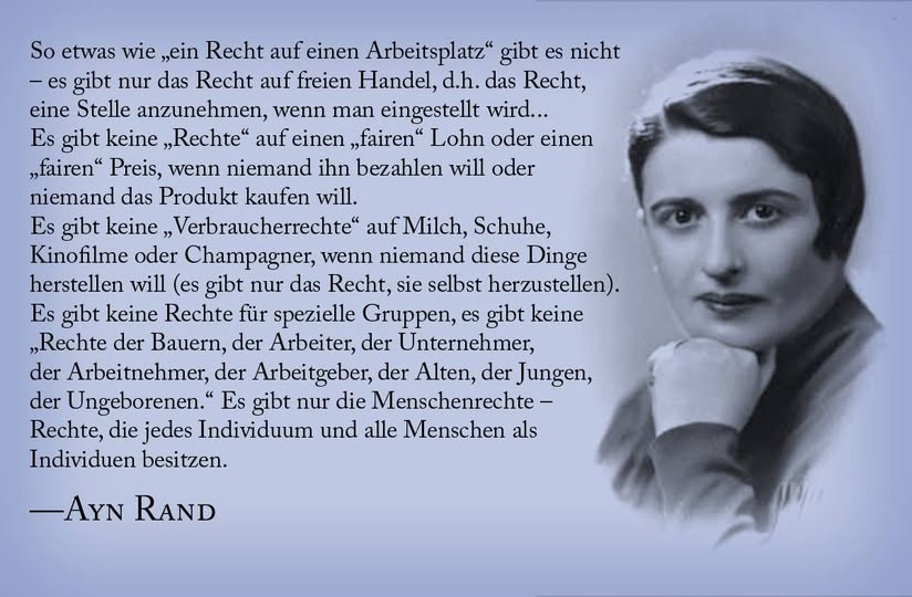 Warum gibt es nur Liberale und Libertäre, die das anders haben wollen? Meinetwegen kann jeder in einem sozialistischen Nirwana arbeiten, wohnen und leben, meine einzige Bedingung? Auf eigene Kosten. Warum muß ich mich für Minimalforderungen von Recht rechtfertigen, dieses ganze Pack, was gegen meine Rechte vorgeht, aber nicht?