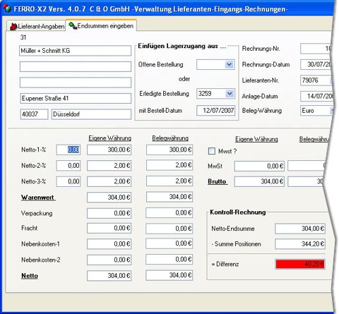 Bestellwesen in FERRO-X2: Eingangsrechnungskontrolle